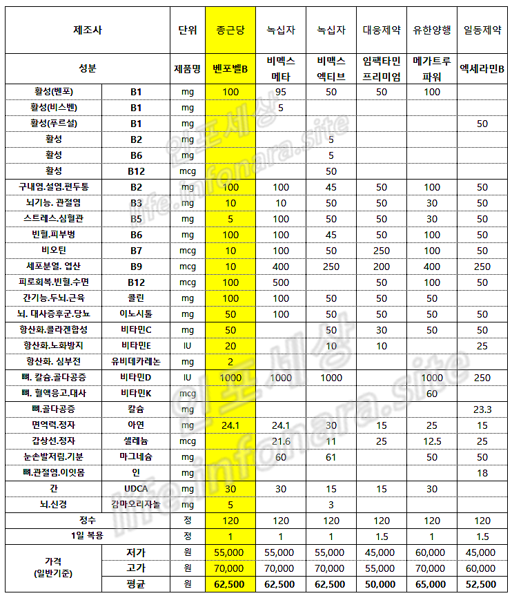 [글의 순서] 벤포벨B 가격 및 성분비교, 효능효과, 복용법