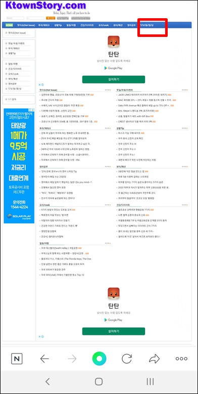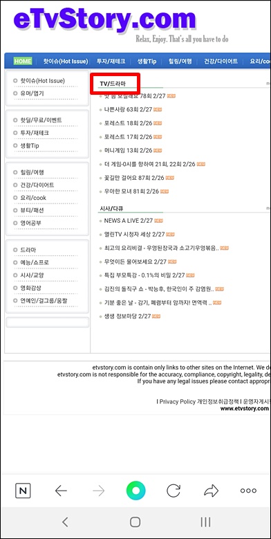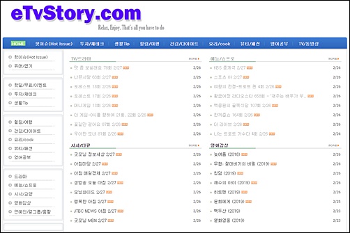 2) 여기서 제일 오른쪽 메뉴 TV/동영상을 클릭하시면 다시 상단 오른쪽에 보여지는 이티비스토리닷컴 이라는 사이트로 옮겨가게 되는데요. 여기서 TV/드라마 메뉴를 클릭해서 들어가시면 됩니다.