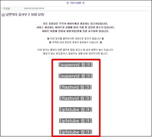 4) 원하시는 회차를 클릭해서 들어가면 십여개의 동영상 제공링크들이 순서별로 정리되어 있습니다. 대부분 상단에 있는 링크들이 재생률이 높은편입니다. 위에서 부터 클릭해서 안되면, 그다음 링크를 클릭하는 순으로 하시면 됩니다.