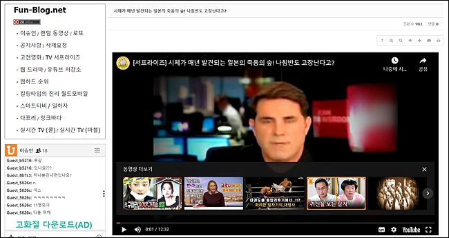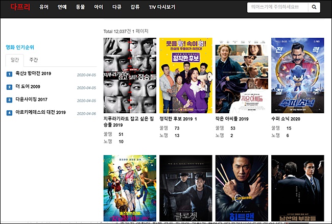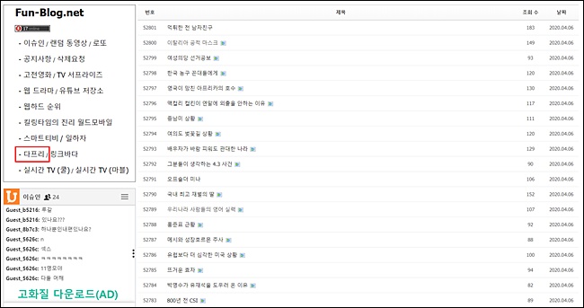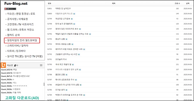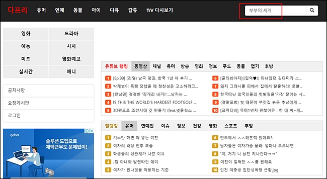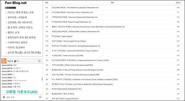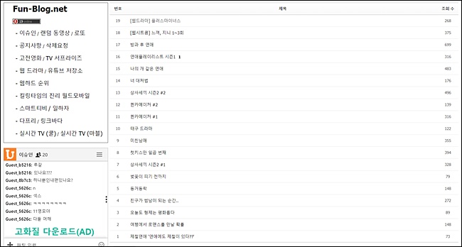 메인 페이지에서 앞서 말씀드린 메뉴들 외에 이슈 게시판, 고전영화, TV 서프라이즈, 웹드라마, 유튜브 저장소 등이 있는데요. 딱히 볼거리가 없을 때 한 번씩 들어가셔서 보시면 의외로 시간 가는 줄 모르고 보게 됩니다.
