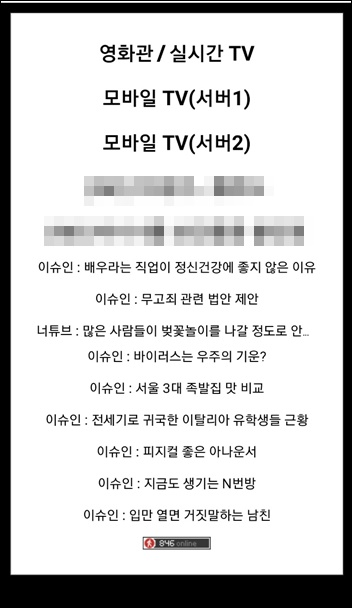 이런 사이트를 많이 이용해 보신 분들은 아시겠지만 방송 링크들이 한 번씩 연결이 안 될 경우들이 자주 있습니다. 그럴 경우를 대비해서 오빤모바일대마왕 사이트에서는 방송 볼 수 있는 사이트들을 여러 군데 연결해 놓은 것 같습니다.